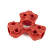 This lockout isolates pneumatic energy without the need for in-line lockout valves. It fits over the male fitting to block all compressed air sources. A central hole allows permanent storage on an air hose, while a side loop enables hanging of both the hose and lockout device.