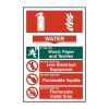 Fire Extinguisher Composite Water' Sign is a 200mm x 300mm fire safety sign. This safety sign is installed above the product to show occupants information on what fire a water extinguisher can and cannot be used on. This sign is a self-adhesive semi-rigid Polypropylene making it easy to apply to a clean dry surface. All our signs conform to the BS EN ISO7010 regulation, ensuring that all graphical safety symbols are consistent and compliant.