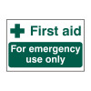 First Aid For Emergency Use Only' sign is a 300mm x 200mm first aid and treatment site sign made from self-adhesive semi-rigid Polypropylene making it easy to apply to a clean dry surface. All our signs conform to the BS EN ISO7010 regulation, ensuring that all graphical safety symbols are consistent and compliant.