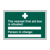 The nearest first aid box is situated: Person in charge: - Self Adhesive PP (300 x 200mm)