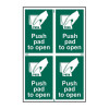 Push Pad To Open' is a 100mm x 150mm fire assembly sign. This sign comes with four single signs (100mm x 150mm) on one sheet with guide lines to cut into individual signage. This sign is a self-adhesive semi-rigid Polypropylene making it easy to apply to a clean dry surface. All our signs conform to the BS EN ISO7010 regulation, ensuring that all graphical safety symbols are consistent and compliant.