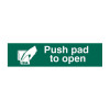 Push Pad To Open' sign is a 200mm x 50mm mini sign. These small sizes make them ideal for placement near to or on equipment. This sign is a self-adhesive semi-rigid Polypropylene making it easy to apply to a clean dry surface. All our signs conform to the BS EN ISO7010 regulation, ensuring that all graphical safety symbols are consistent and compliant.