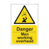 Danger Men working overhead - PP - 1.2mm Polypropylene Non Adhesive - Non Bagged - (400 x 600mm)