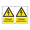 Danger Electric fence - Self Adhesive PP (300 x 200mm)