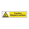 Caution Slippery Surface' sign is a 200mm x 300mm hazard warning sign made from self-adhesive semi-rigid Polypropylene making it easy to apply to a clean dry surface. All our signs conform to the BS EN ISO 7010 regulation, ensuring that all graphical safety symbols are consistent and compliant.